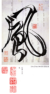 - Чжан Лун#янь. Фэн («Ветер»), 1968 г.; почерк син#шу; писчая бумага, тушь, 21,6х27,9 см; собрание семьи каллиграфа, Тайвань [Лунгу, Т. 1. С. 48]